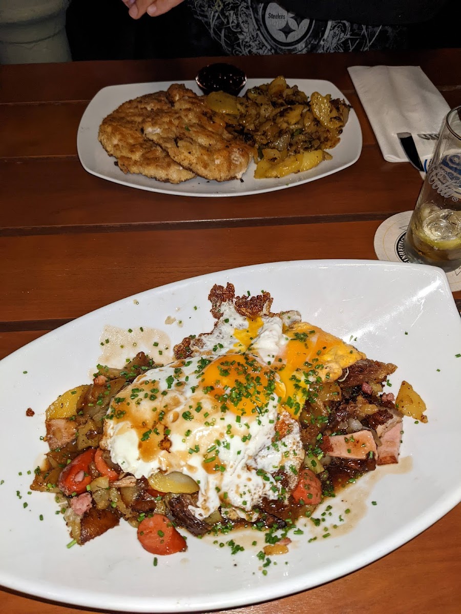 Step inside, and you will be welcomed by a warm and inviting atmosphere. The rustic wooden beams and traditional Bavarian decor immediately transport you to a cozy lodge reminiscent of an old-world beer hall. The scent of freshly baked pretzels and hearty meats fills the air, enticing your senses from the moment you arrive.